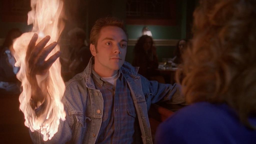 “One of the strongest characteristics of genius is the power of lighting its own fire.” John W. Foster. A caretaker with pyrokinetic powers isn’t a genius, but he can start a fire with his mind. Unable to form relationships with women, he sets men on fire to fill the void. His practice of sending love letters to the victims’ wives will never work as a seduction strategy. There is a lot of heat in this episode, and it isn’t just the fires of a pyromaniac. Fox Mulder is kissed by an old flame from England while Scully watches. Is there anything hotter than Phoebe’s lips?
